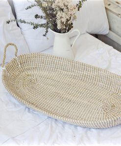 CHANGING BASKET FOR BABY. Handmade Seagrass Changing Basket is super stylish and its modern design will compliment your nursery. Update your baby’s Nursery with our style changing basket. Natural tones look great with all styles and décor. Each Basket is Unique, and Hand woven by our Artisans, it will not all the same. and different weather the the color of the seagrass will be a little different. Please accept this natural issue. Made of natural seagrass. It can be used as storage caddy for books, blankets, and toys. It can also be used as a picnic basket or an indoor bed for small pets.