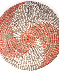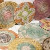 Handwoven from seagrass by artisans in Vietnam, this set of wall decor discs features vibrant designs in uplifting shades of colors. Complete with a hanging loop, they liven up any space in your house either hung individually or grouped into an eye-catching display.